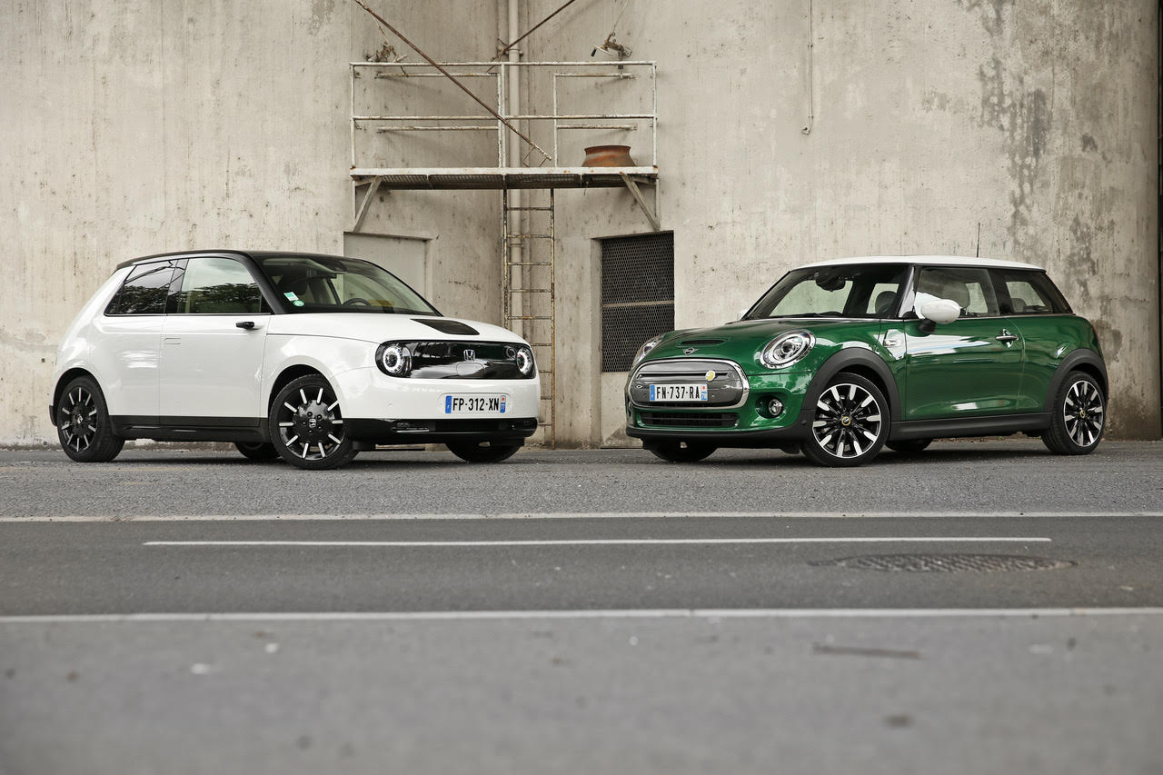 Absent du segment des voitures électriques, Honda a créé une révolution au salon de Francfort en 2017 en dévoilant l’Urban EV Concept. L’étude de style, particulièrement inspirée par des modèles emblématiques de la marque et presque inconnus chez nous, annonçait l’arrivée d’une citadine sans émission dans la gamme. À ce même moment, plus loin dans le palais des expositions, Mini levait le voile sur la Mini Electric Concept. Coïncidence ou non, la rivalité naturelle entre les deux modèles est alors lancée.