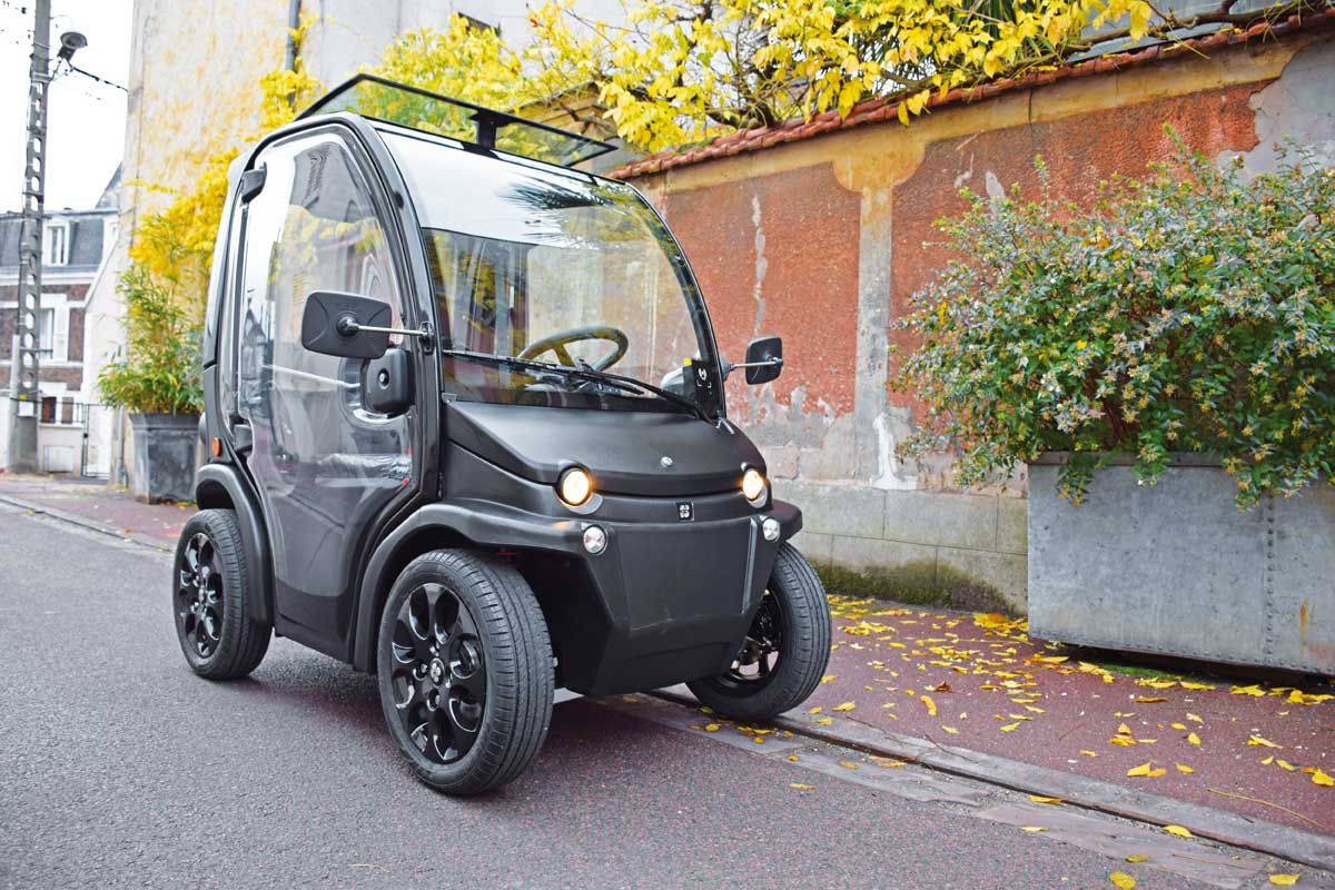 sans permis électriques. Son but : un encombrement minimal pour se faufiler partout et se garer n’importe où. Le secret : des moteurs inclus dans les roues arrière, extrêmement compacts. Fondamentalement, l’auto n’a pas radicalement changé au fi l des années, mais le constructeur italien s’est attaché à la faire évoluer régulièrement. Ces dernières années, on a ainsi vu apparaître une très intelligente version Lithium Re-Move. Une idée géniale : la batterie, qui se situe entre les deux roues arrière, se retire de l’arrière comme une valise à roulettes. Malin, même si la lourdeur de l’ensemble empêche d’emprunter des escaliers. Voilà aussi pourquoi l’autonomie se limite à 55 km, contre 100 km pour la batterie standard, proposée au même tarif. Depuis peu également, une nouvelle version Big (dont le nom ne manque pas de surprendre pour un engin long d’à peine plus de 1,80 m) offre un volume de coffre majoré grâce à un hayon plus bombé. Enfin, la Birò Bolt signe le départ, pour la première fois, d’Estrima de la catégorie des voitures sans permis. Cette variante homologuée comme un quadricycle lourd (avec permis) conserve les mêmes moteurs mais profite d’une vitesse de pointe de 60 km/h au lieu de 45 km/h.