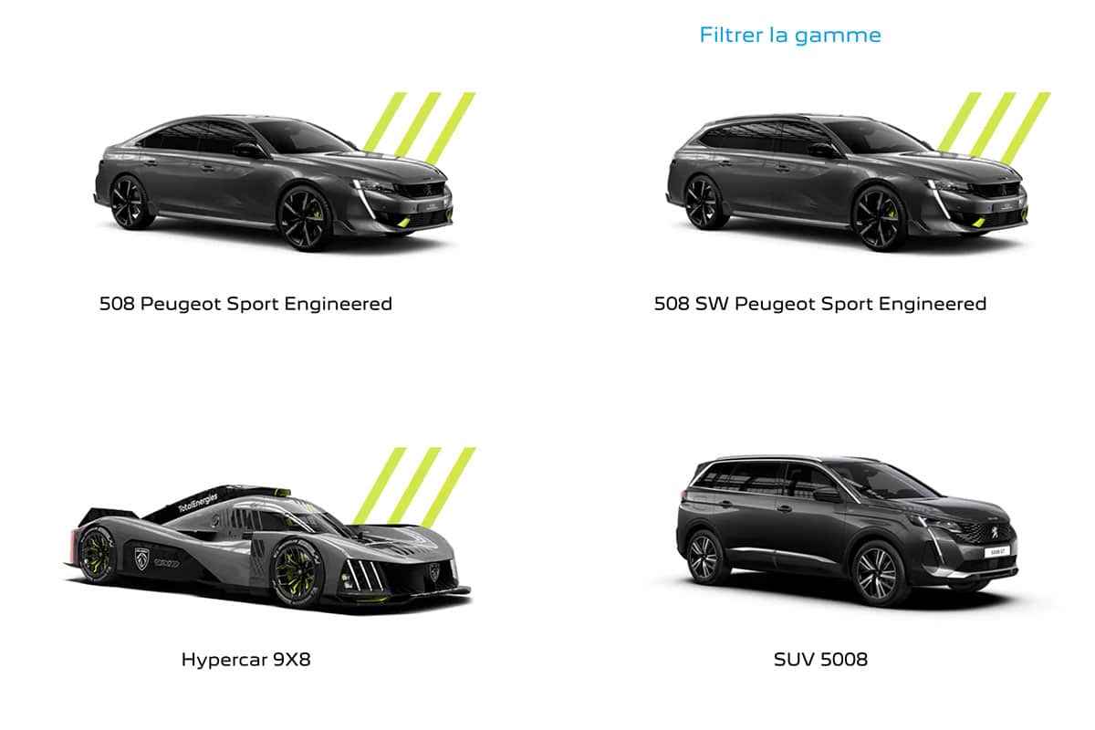 Afin de mieux réduire l’écart qui sépare les voitures de course et les voitures de route, la marque au lion a intégré le Peugeot 9X8 des 24 Heures du Mans à son catalogue régulier, aux côtés des Peugeot 508 hybrides rechargeables issues de la gamme Peugeot Sport Engineered.
