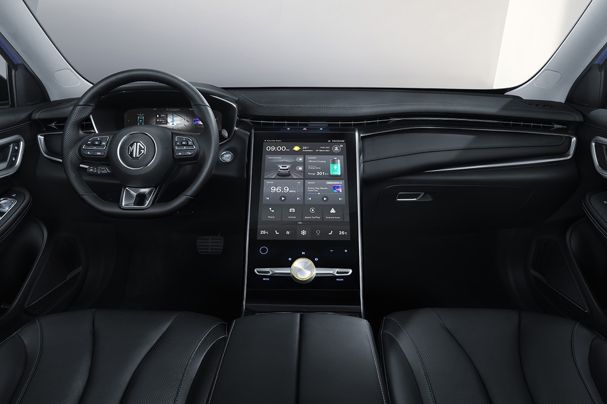 Le style se démarque du Roewe qui lui sert de base. Plus expressif à l’extérieur, il se montre particulièrement technologique dans l’habitacle avec une dalle tactile verticale de 19,4 pouces qui pourrait faire rougir une Tesla Model S.